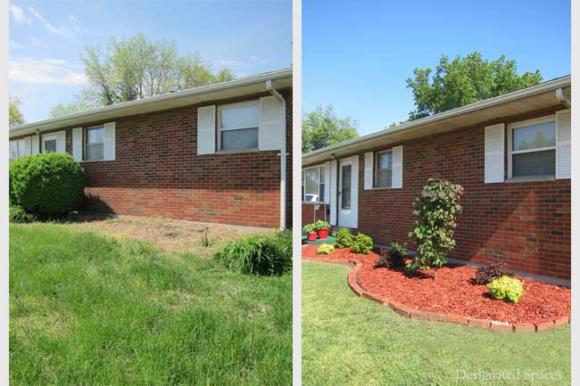 Phase three was planting and lastly topping off the exposed soil with mulch to inhibit weed growth. The final outcome is an assortment of Azalea, Weigela, Kaleidoscope, and Burning Bush shrubs, along with a dwarf Weeping Ruby Falls Redbud tree. All of the plants were arranged to create a simple, low maintenance landscape with attractive curb appeal.